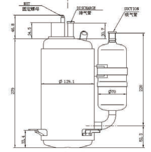 | 压缩机高度(mm不含安装件) | 279 |